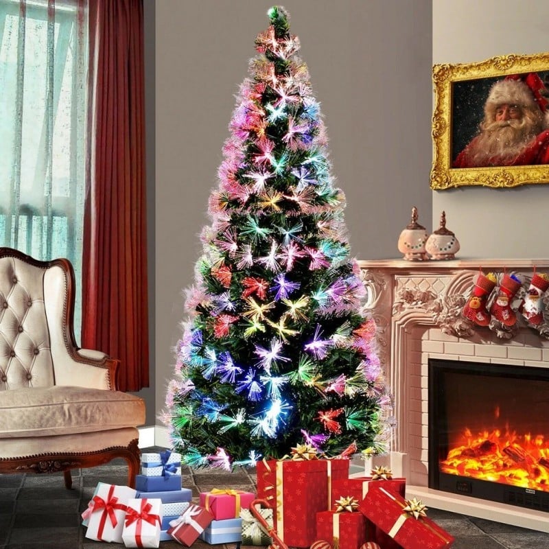 Transformă-ți casa într-un decor de poveste cu bradul artificial de 1.8/2.1 metri cu fibră optică, unul dintre cele mai spectaculoase modele de Crăciun. Vârfurile ramurilor conțin fibre optice care luminează în mai multe culori, creând efecte vizuale magice, fără a mai fi nevoie de instalație separată.